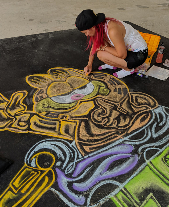 “Pink Panda has been a part of the Annual Grand Beach Sandcastle Competition the last two years with her fantastic chalk art on the boardwalk. It has enhanced the event and brought an appreciation for this art form to a group of individuals that have shown enthusiasm and admiration for this art. Pink Panda will always be a part of this event and we hope you have the opportunity to make it to Grand Beach to see her great work.“