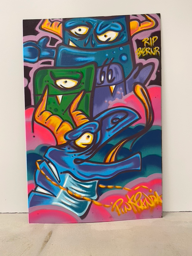 4 ft. x 6 ft. piece done for Pitikwé Skatepark. Spray Paint. Winnipeg, Manitoba. Canada.