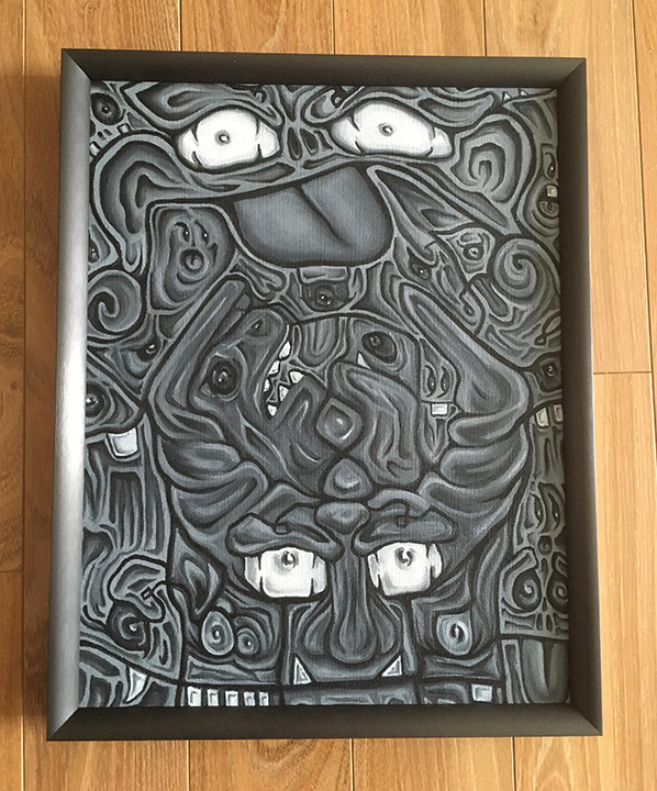 First time using oils and my first painting of 2018. I decided to try the water mixable oils for this piece. It has been a while since I've used just black and white paint. Fun times! 11" x 14" black flat panel canvas, framed. oils. 2018.