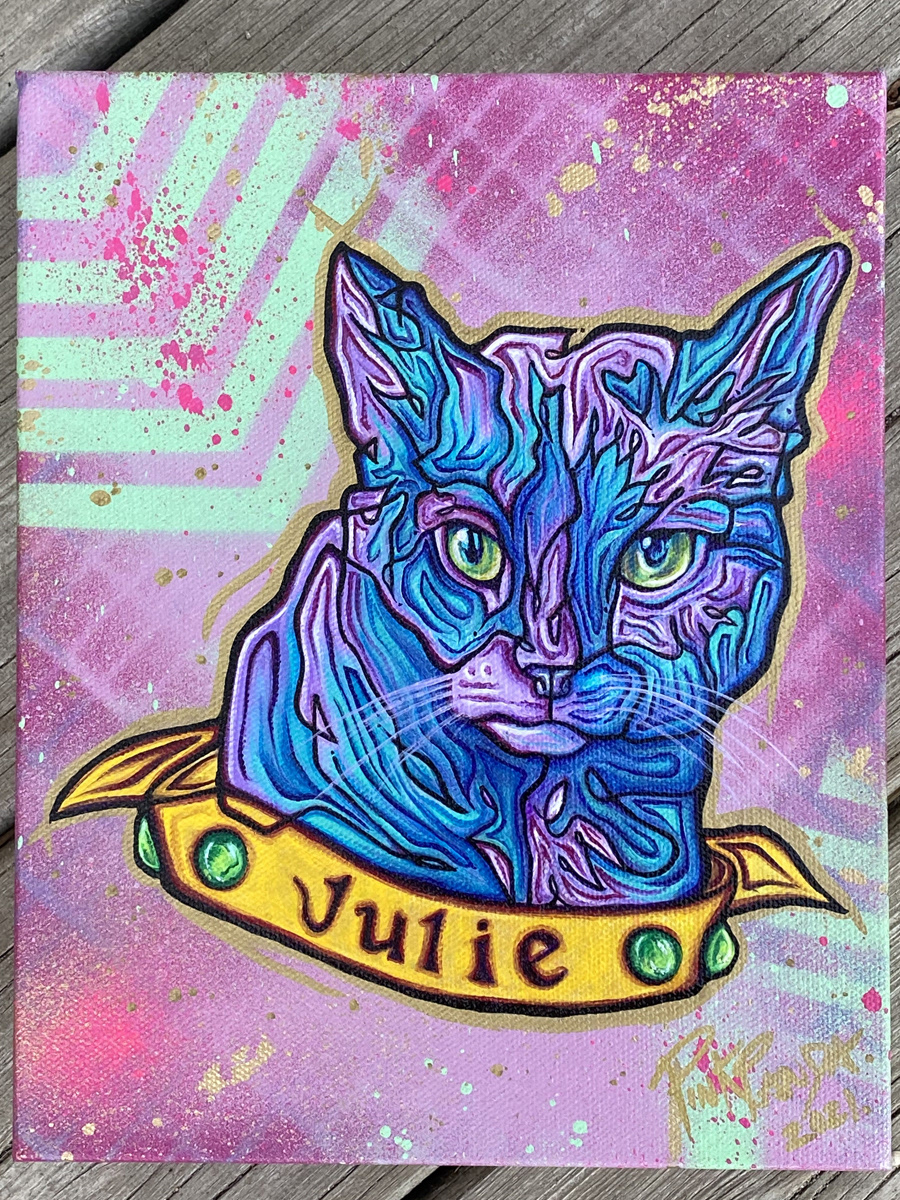 Acrylic and spray paint on 8" x 10" gallery wrapped canvas.