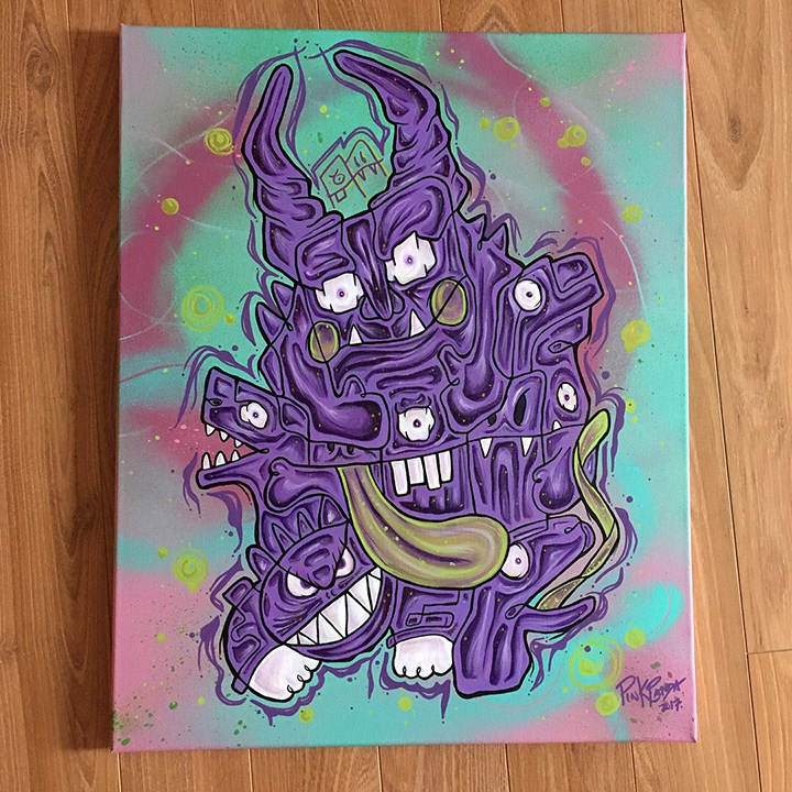 Spray Paint and acrylics on stretched canvas. 16" x 20". 2017.