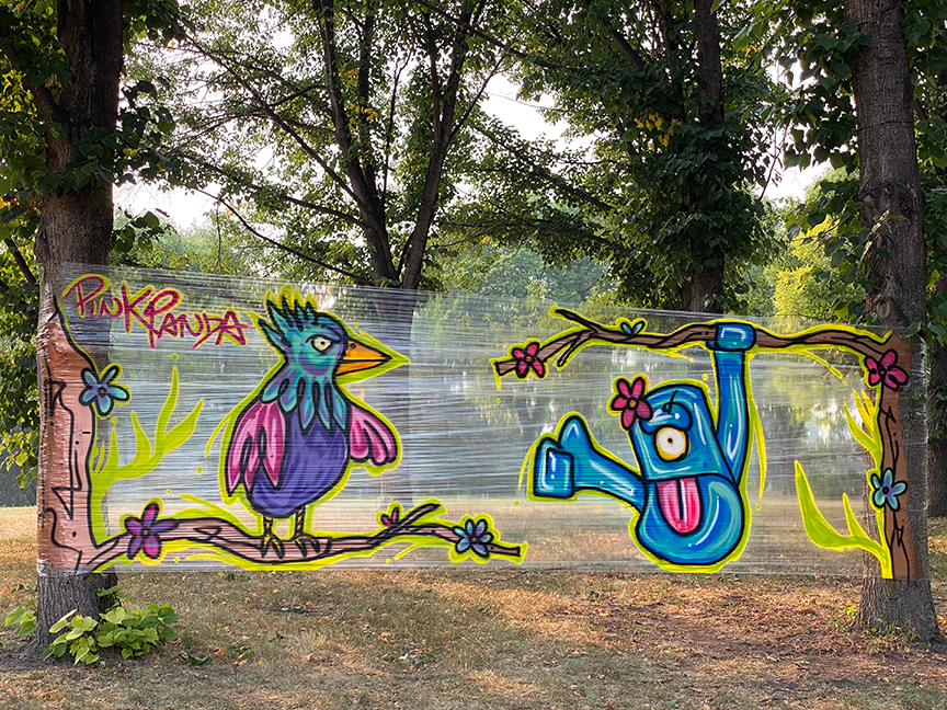 Live painting on saran at Kildonan Park. Spray Paint. Winnipeg, Manitoba. Canada.
