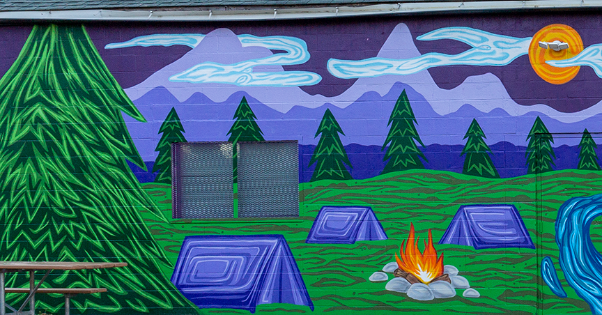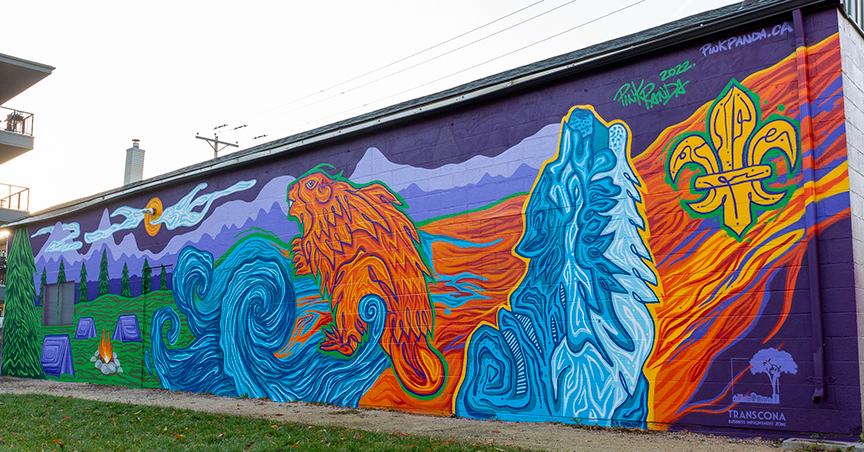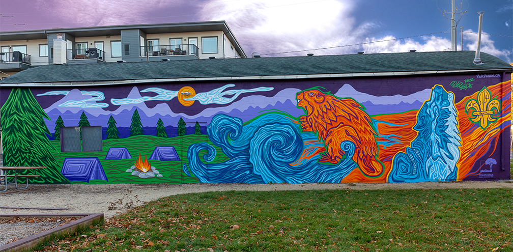 A mural I repainted on the Transcona Scout Hall for the Transcona Biz, Winnipeg, Manitoba Canada.