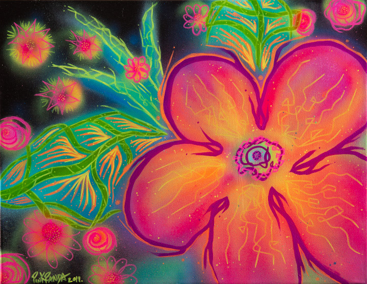18" x 14", acrylics and spray paint on canvas. uv painting. 2019. Limited edition 3D chroma prints now available in shop.