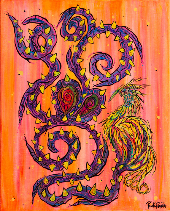 Debut at my first solo show: Pandamensional, Spring 2019. Cre8ery Gallery, Winnipeg, MB. 16" x 20", uv acrylics on canvas. 2018. Sold. Limited edition 3D chroma prints now available in shop.