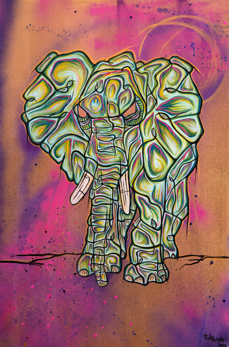 Debut at my first solo show: Pandamensional, Spring 2019. Cre8ery Gallery, Winnipeg, MB. 24" x 36", acrylic and spray paint on canvas. 2019. Sold. Limited edition prints now available in shop.